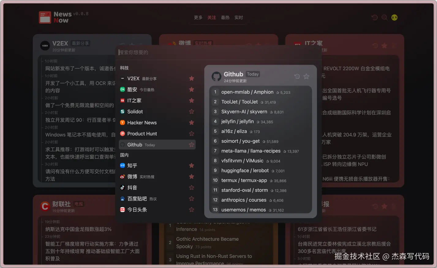 对 NewsNow 感兴趣?你可以直接访问它的 GitHub 仓库: