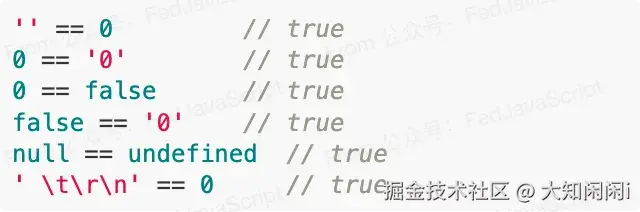 JavaScript的双等号(==)运算符在比较两个值时会进行类型转换,这也被称为"宽松相等"。这种特性初看似乎方便,但实际上带来了许多难以预测的行为: