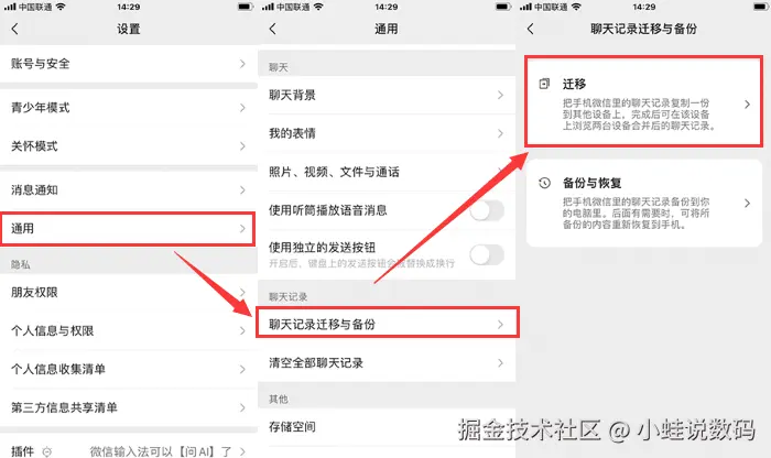 第二步:在微信设置中,找到 【聊天记录迁移与备份】 ,选择 【迁移】 选项。