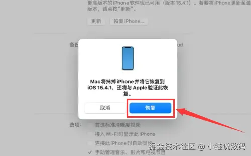 第二步:在iTunes里找到你的设备,点击 【恢复备份】 选项,选择包含了微信聊天记录的备份文件进行恢复。