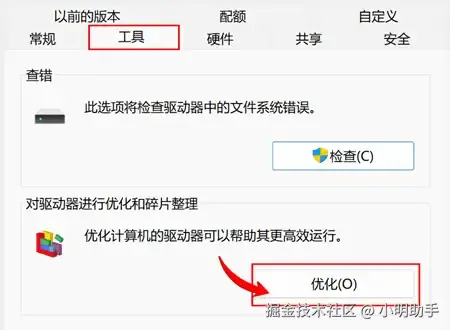 在【此电脑】中找到并右击,在列表中点击【属性】。进入【属性】页面后,在上面选择【工具】后,再下方点击【优化】按钮。
