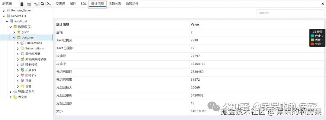 统计信息:查看数据库统计信息,包含事务ID,元组信息等