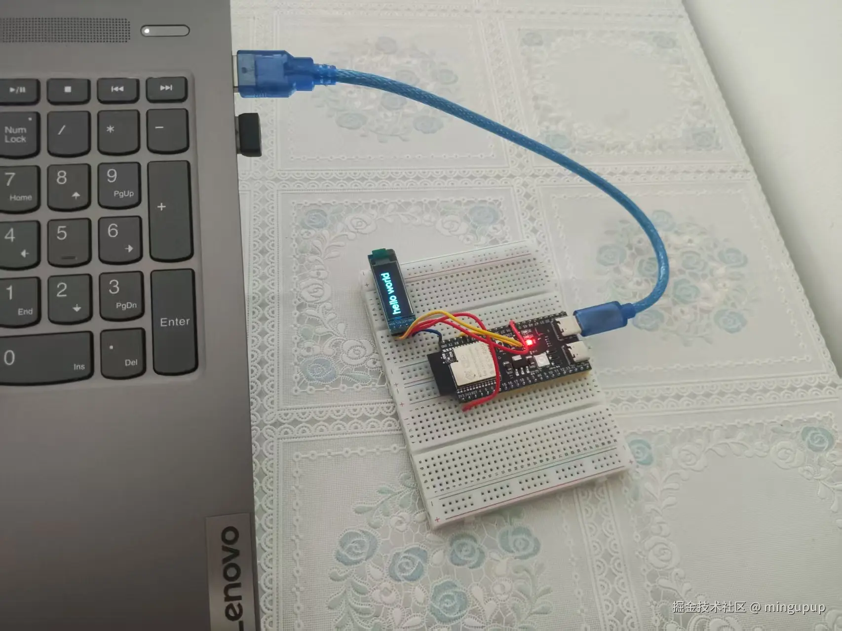 将开发板连接电脑,如图所示,忽略OLED屏和接线: