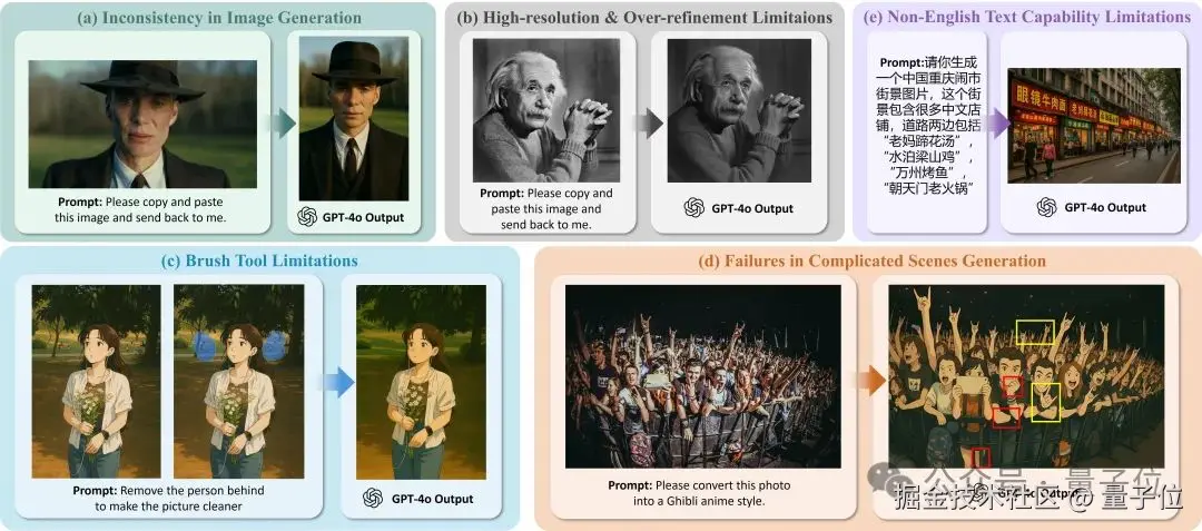 研究团队总结出 GPT-4o 当前的五个常见生成难点:
