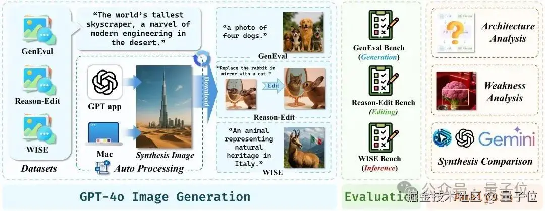 为了支持这一系统评估,研究团队开发了一套针对 GPT-4o 的自动化交互脚本,解决了当前该模型尚未开放图像生成 API 的现实问题。