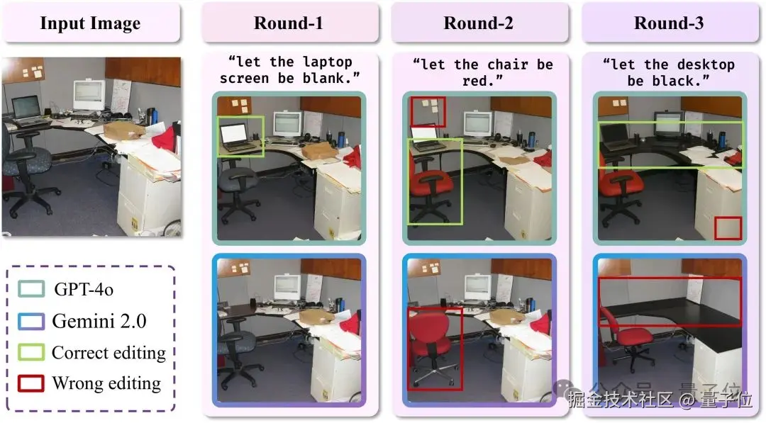 除了性能与架构机制,GPT-4o 在实际的使用体验中也展现出了强劲的竞争力。研究团队对其与 Google 最新发布的 Gemini 2.0 Flash 进行了多轮编辑任务的实测对比。