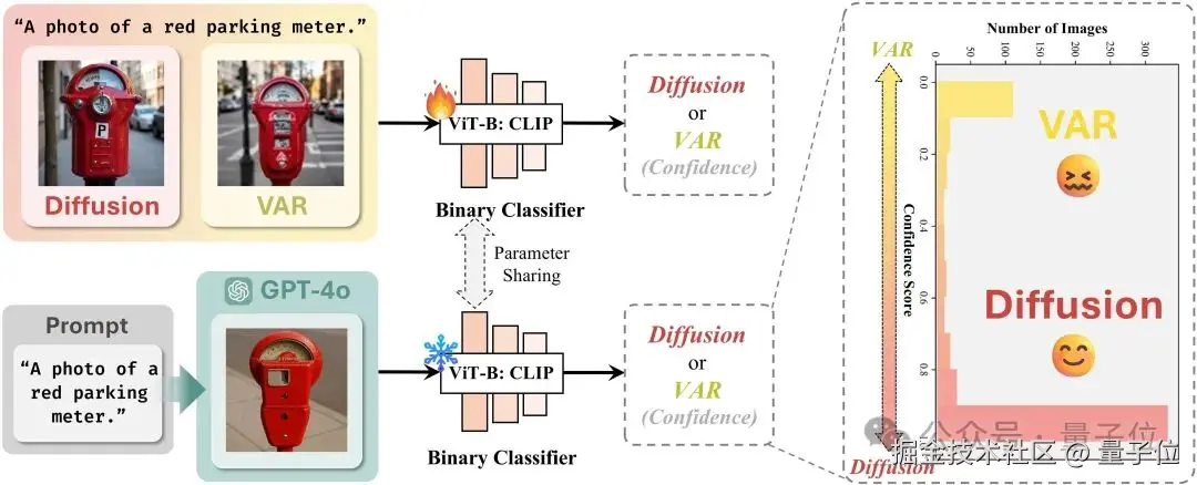 然后,用同样的 Prompt 交给 GPT-4o 生成图像,将这些图像输入该分类器进行识别。