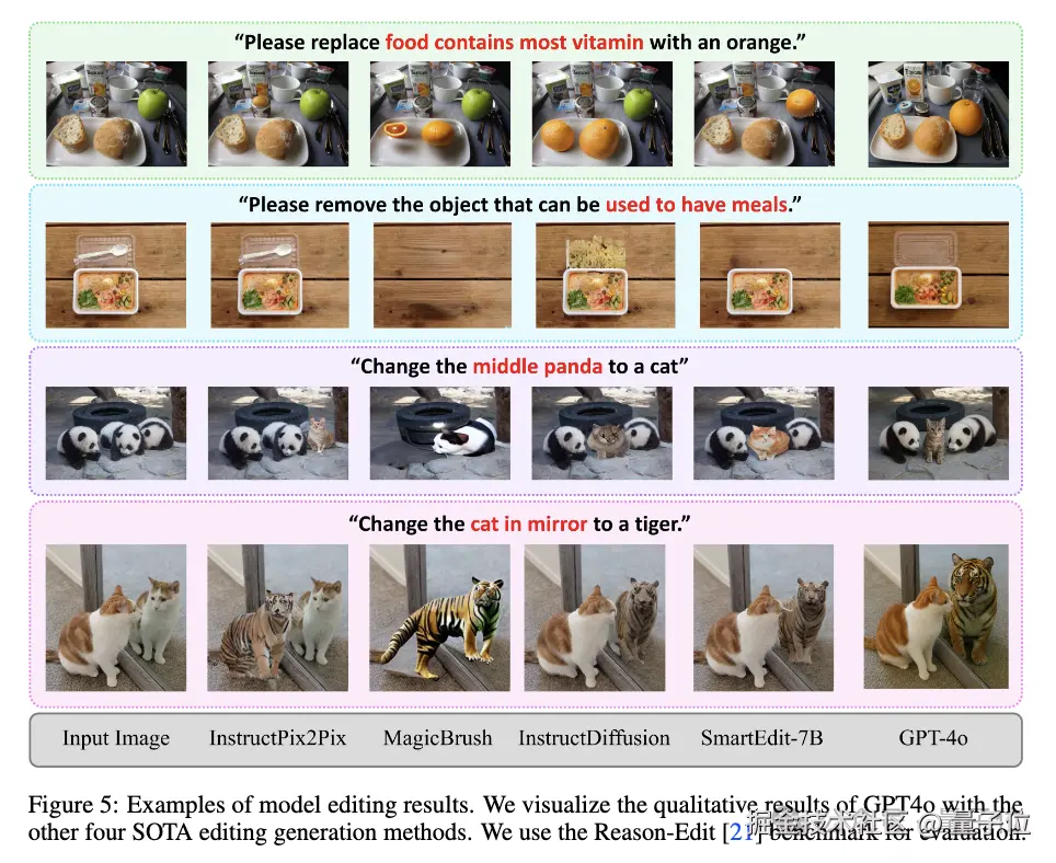 而在图像编辑任务(Reason-Edit)中,GPT-4o 得分高达 0.929,领先第二名超过 0.35,说明其在指令理解和局部控制上表现极其稳定。