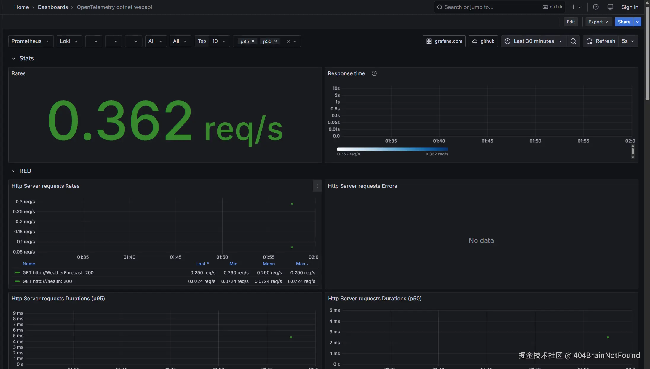 在.NET Core Web API中集成Grafana生态系统的监控工具链,实现全栈可观测性(日志、指标、追踪)