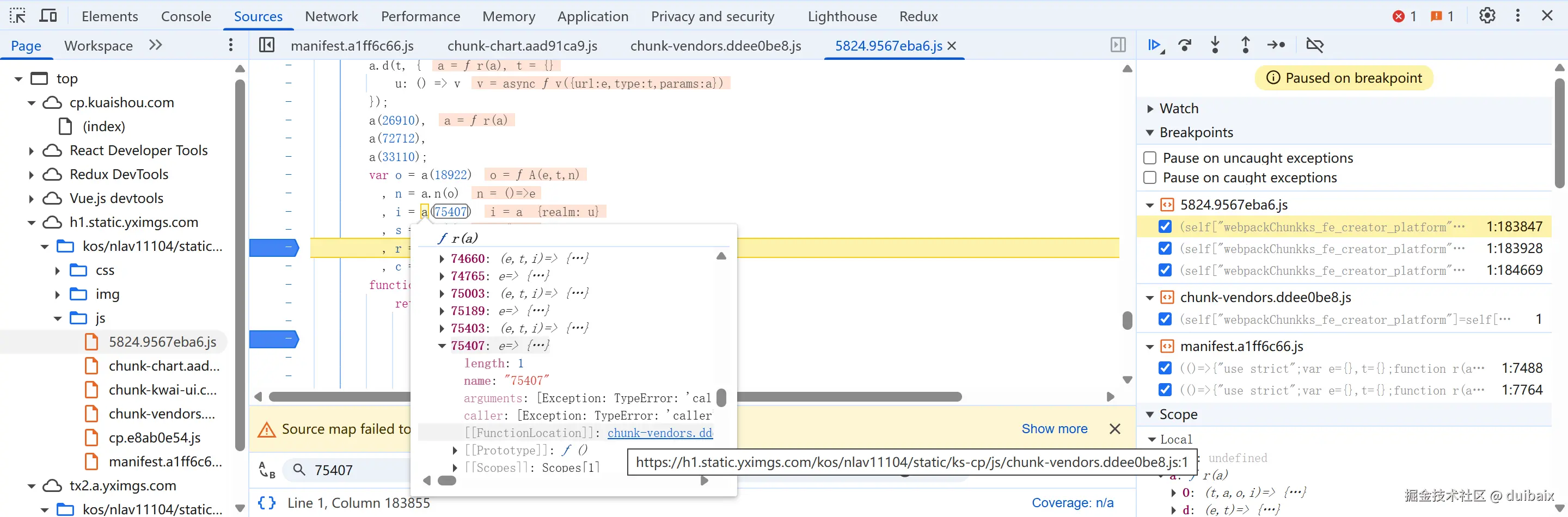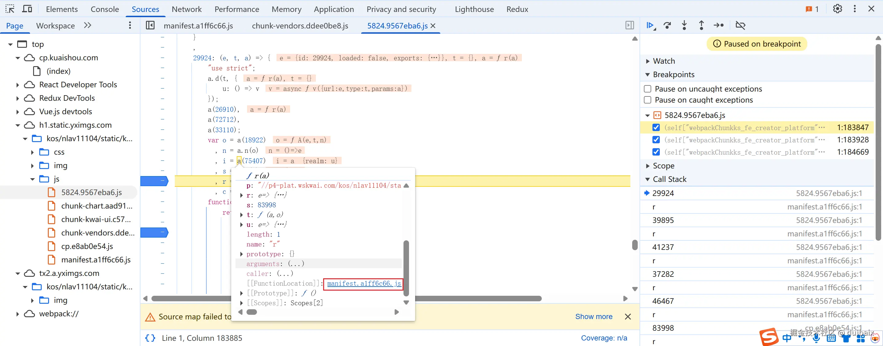 s函数, 查看函数调用栈, 在调用i函数附近可以找到var i = a(75407)的声明, 也就是这个a(75407)函数就是我们要的s()