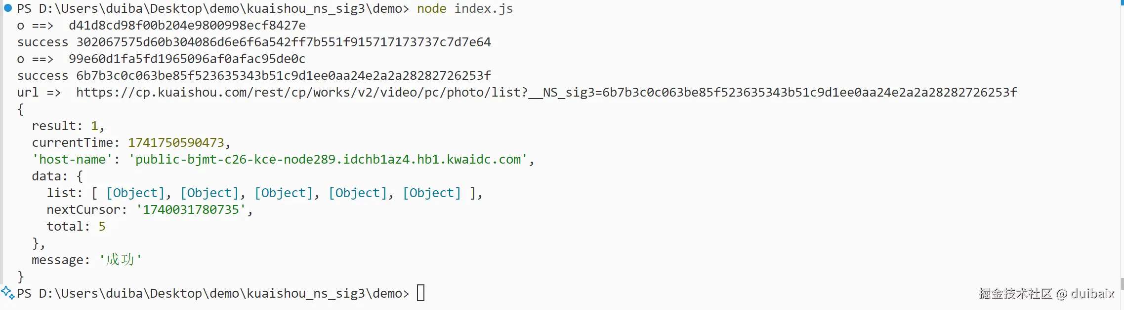 快手在请求数据接口时, 所携带的 __NS__sig3参数是由具体请求参数进行排序, md5加密并进行encode处理后的值