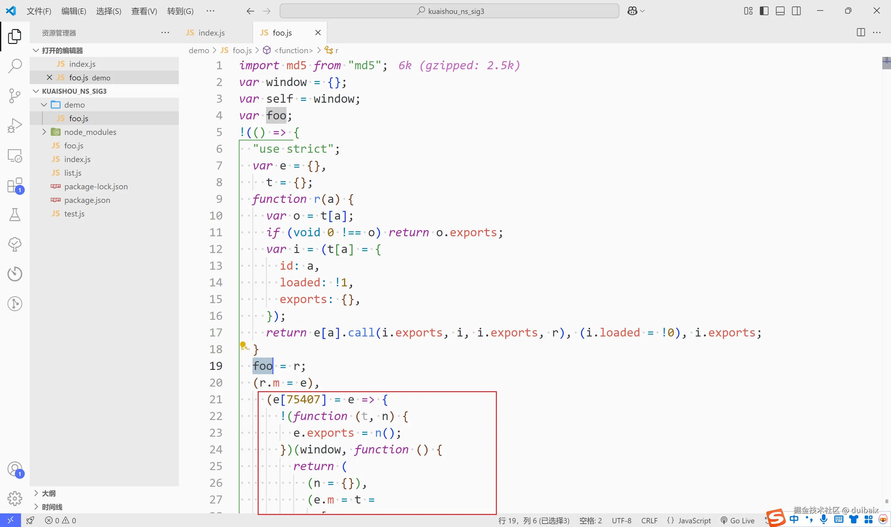 - 在webpack入口文件声明75407这个函数foo并将变量以全局变量形式导出, 方便后续使用