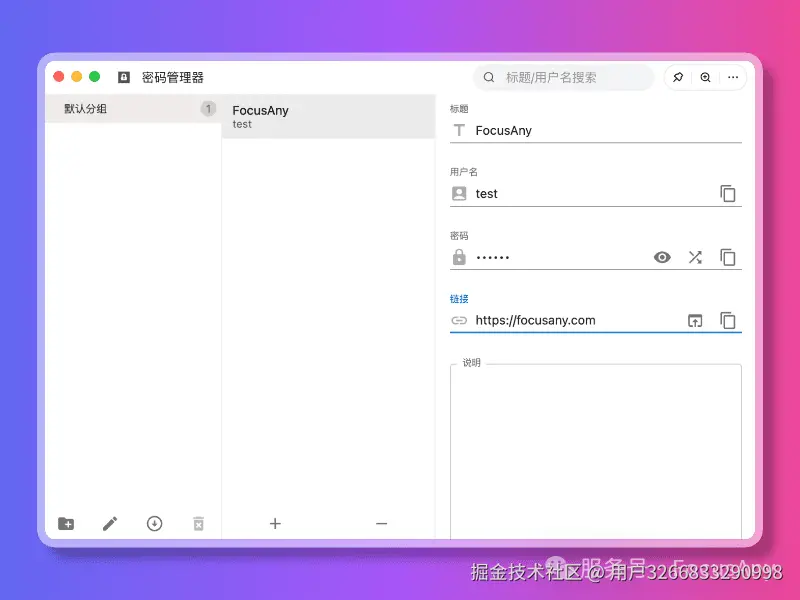 如果你由于经常记不住密码,那么 FocusAny 也是一个非常好的密码管理工具箱。