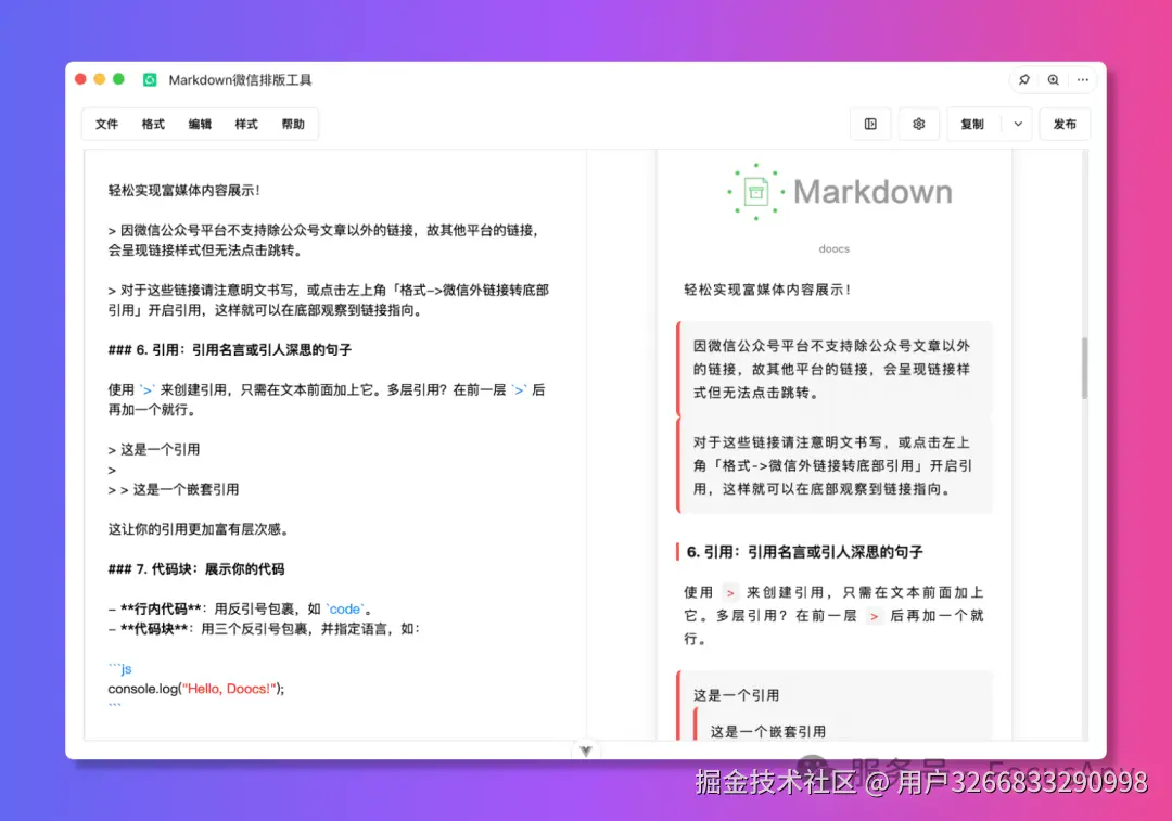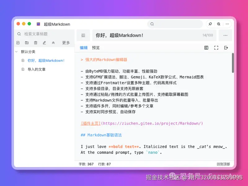 如果你是一个 Markdown 爱好者,那么 FocusAny 也是一个非常好的 Markdown 编辑器。通过安装 Markdown 插件,可以实现 Markdown 文件的管理和编辑。