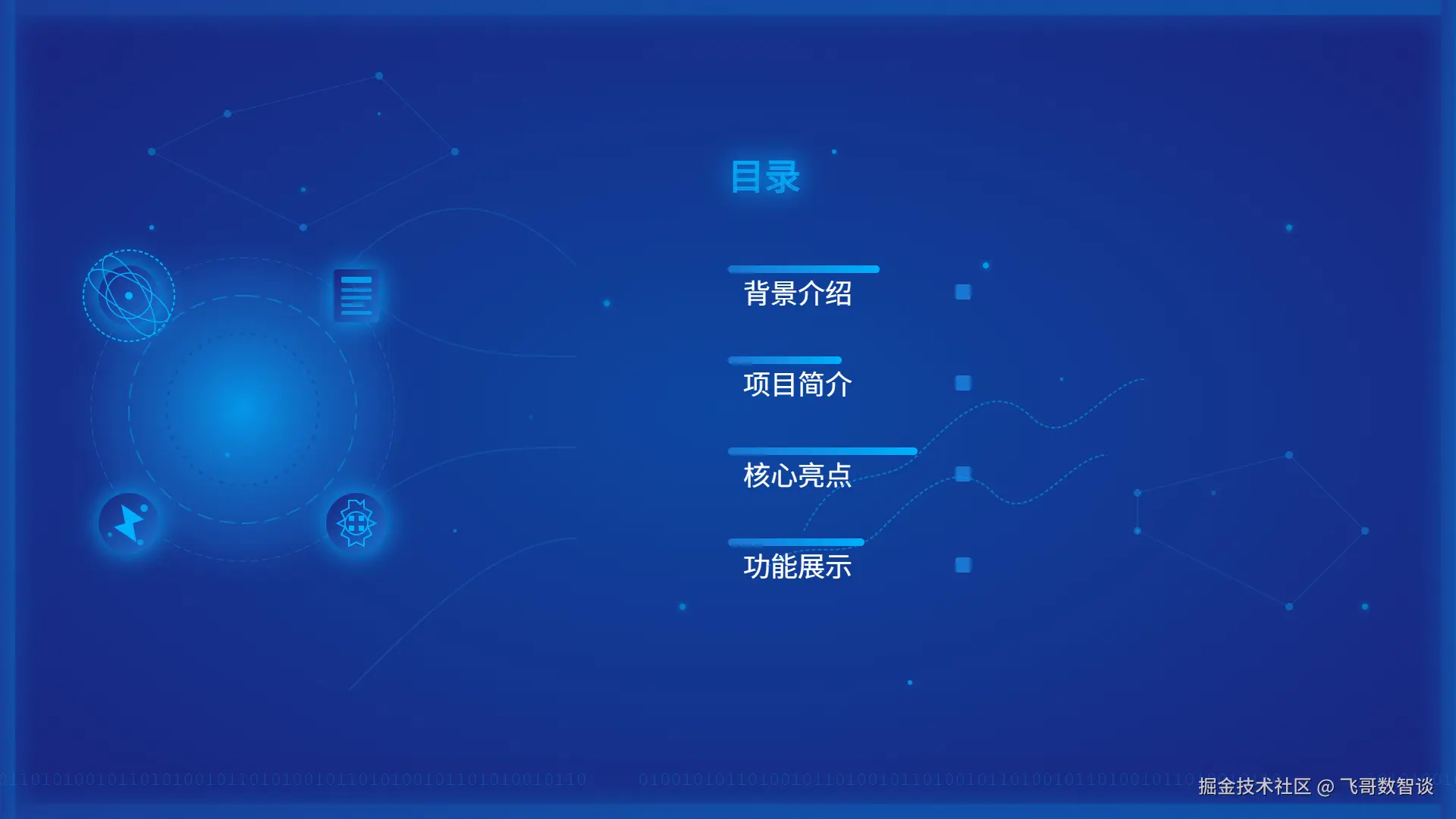 标题:"目录"(Arial Black字体,字号36pt,霓虹蓝描边)