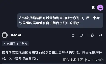 因为左键需要用来选取缩略图,所以使用右键(移动端长按)来实现添加/移除到自由组合序列中的功能。