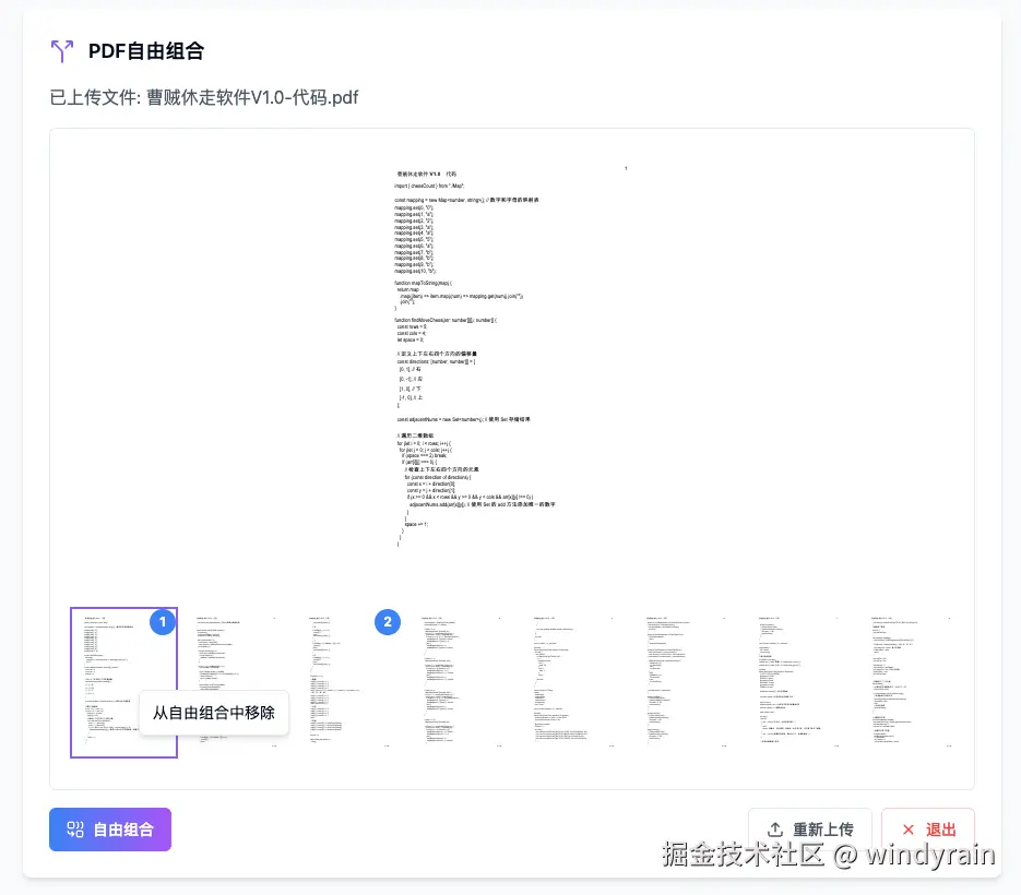有点惊喜的是,AI还把自由组合按钮的状态给根据是否有选中的页面调整了,这个就算是人工来写,也不一定第一下就能给加上。