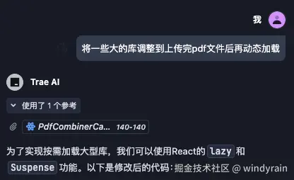 因为我是个单页工具网页,如果所有工具网页的库一次性都加载,需要耗费更多的流量,也会带来更长的加载时间,所以让 AI 帮忙优化下。