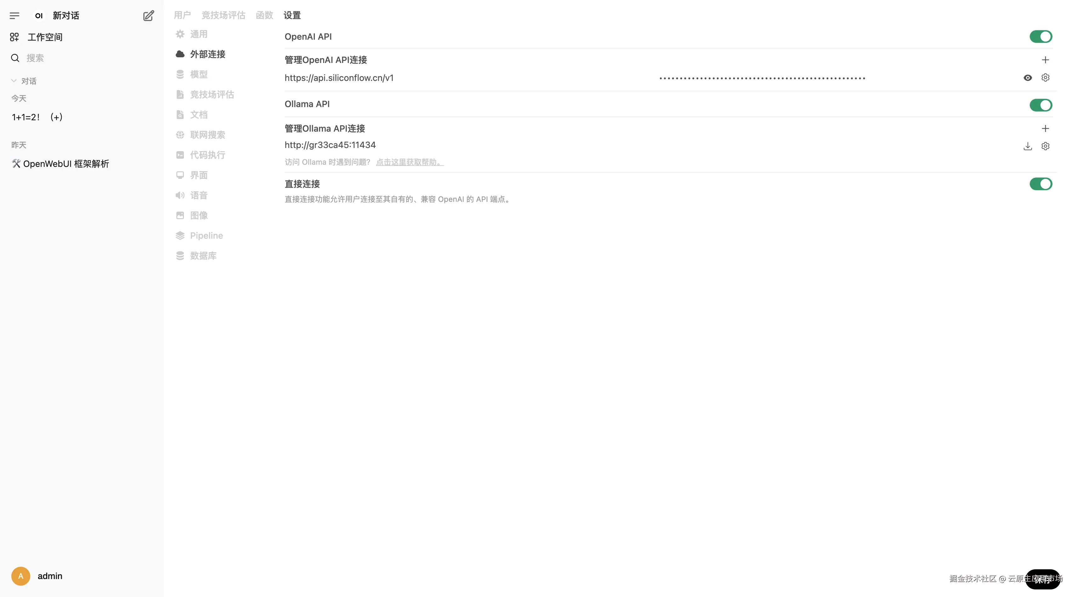 - OpenAI API:对接已有的 OpenAI API 地址+密钥的方式连接。