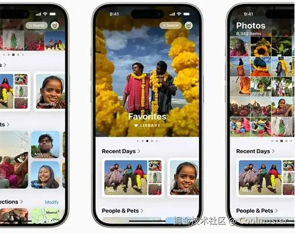 苹果以更干净、更精简的设计改进了照片应用程序。底部的传统标签栏已被连续、无缝的滚动体验所取代,使您可以更轻松、更直观地浏览照片。