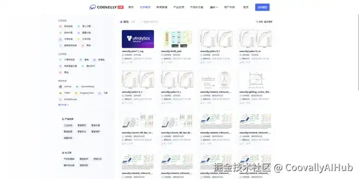 Coovally平台整合了国内外开源社区1000+模型算法和各类公开识别数据集,无论是YOLO系列模型还是Transformer系列视觉模型算法,平台全部包含,均可一键下载助力实验研究与产业应用。