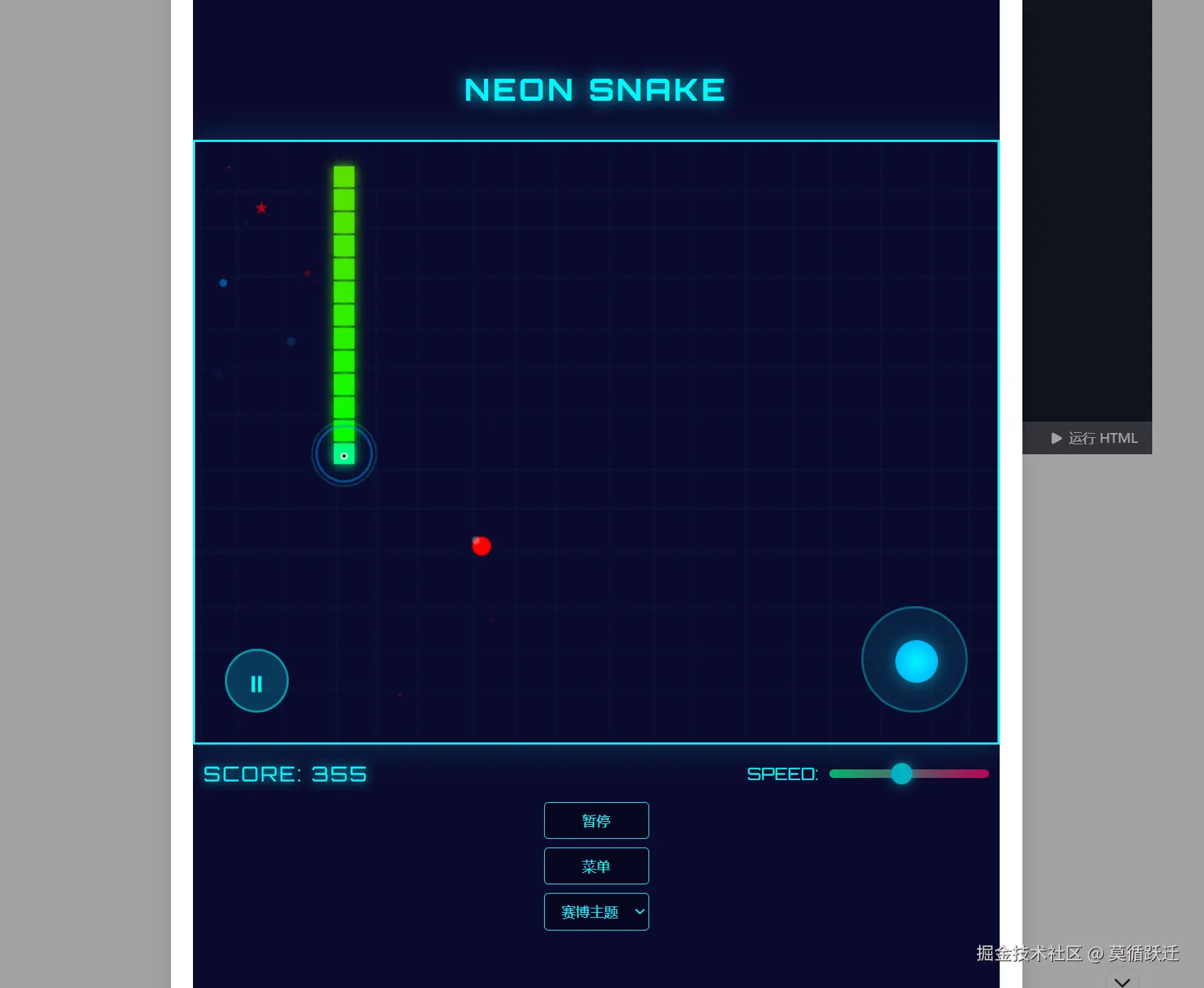 我想开发一个炫酷科技风的贪吃蛇......