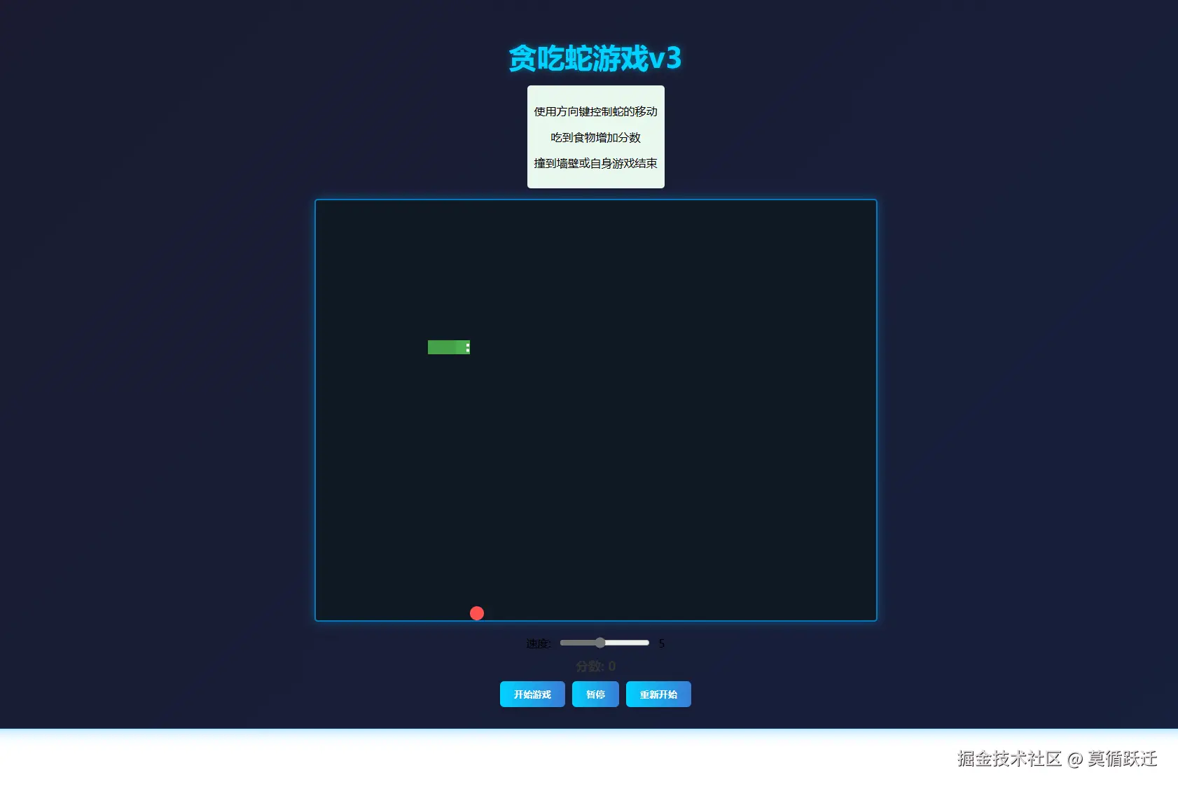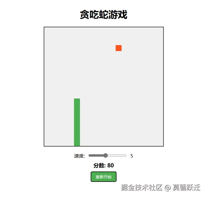 - 可以通过滑块调整蛇的移动速度(1-10级)