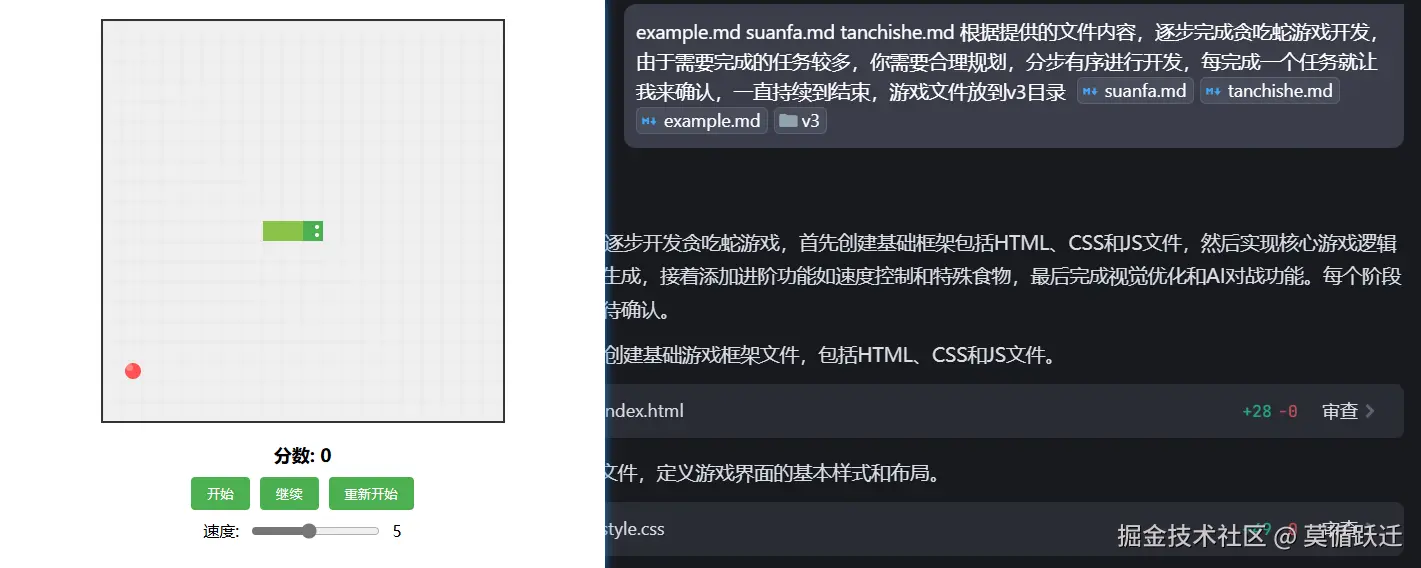 让我们给deepseekv3一点帮助,使用deepseekr1 总结了文件内容,让它实现贪吃蛇小游戏