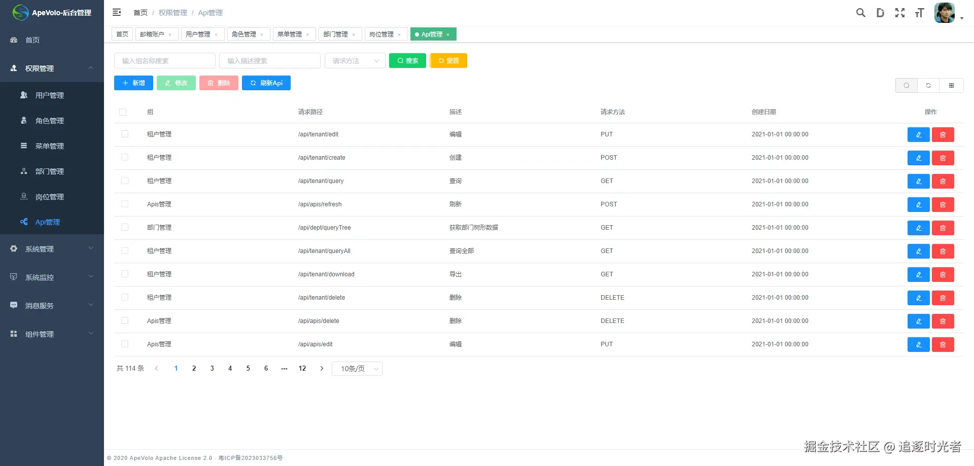 今天大姚给大家分享一款基于 .NET 8 + Vue 开源、前后端分离的企业级中后台权限管理系统,助力快速完成常规业务需求开发:ApeVolo.Admin。