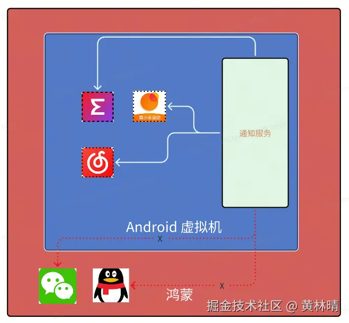 因为Android通知服务只能监听那些Android App的通知,对于已经适配了鸿蒙系统的软件如微信、QQ等没有运行在Android虚拟机中,所以是无法监听到的。