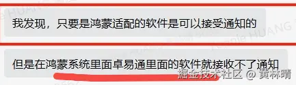 简单的说,就是鸿蒙系统的用户安装了我们的Zepp App,有一些功能无法正常使用,如:“用户收不到微信的通知提醒,但是却可以收到Zepp本身的通知提醒”。用户觉得是鸿蒙适配的问题。
