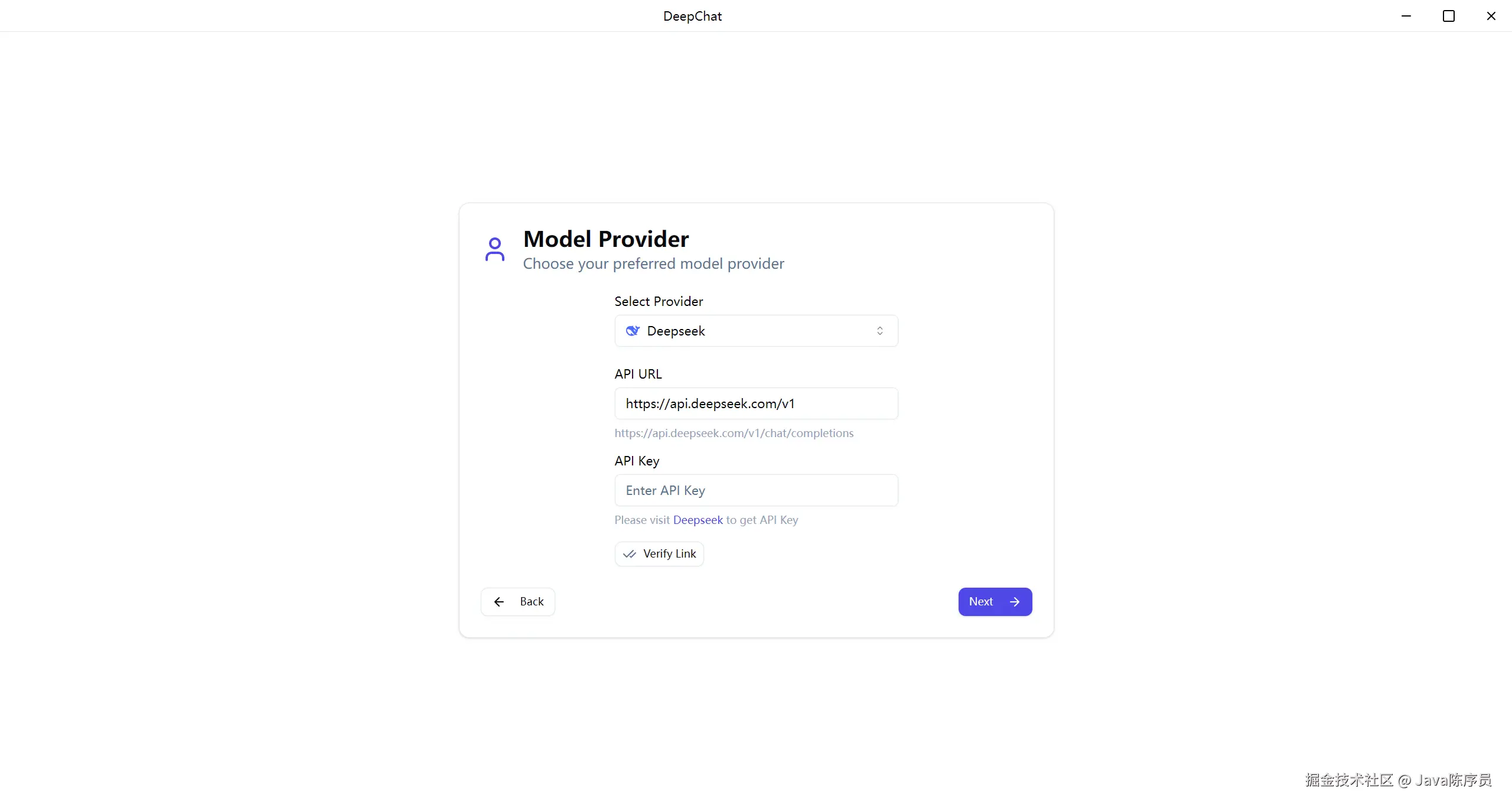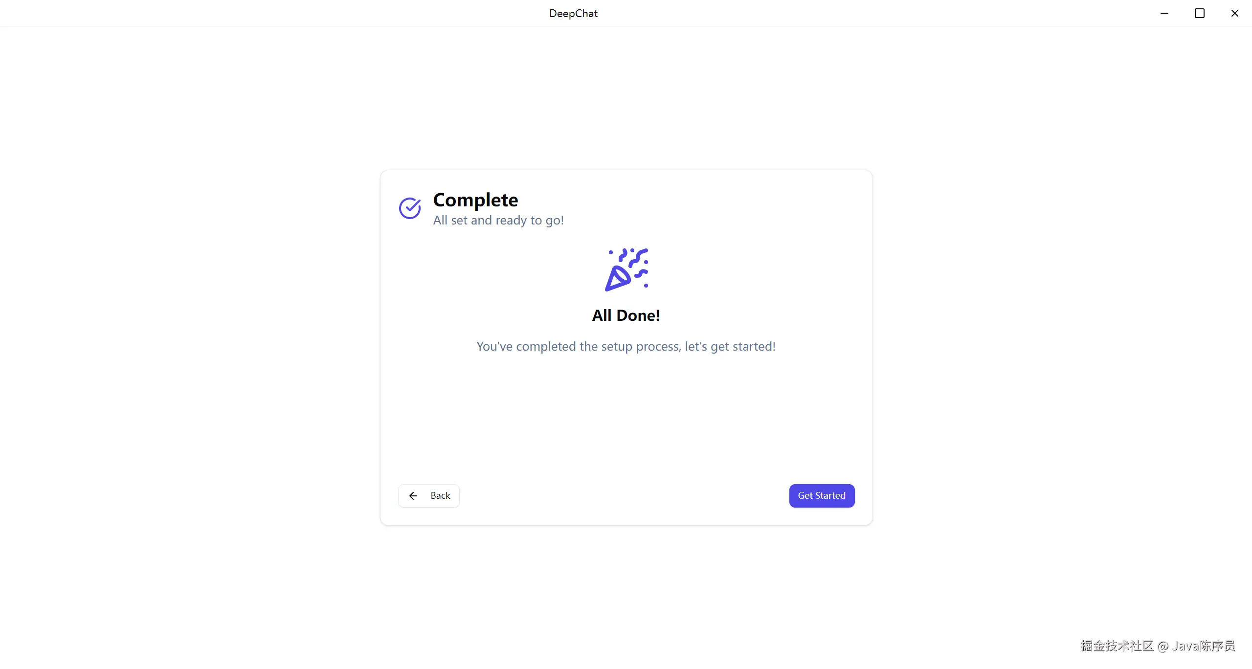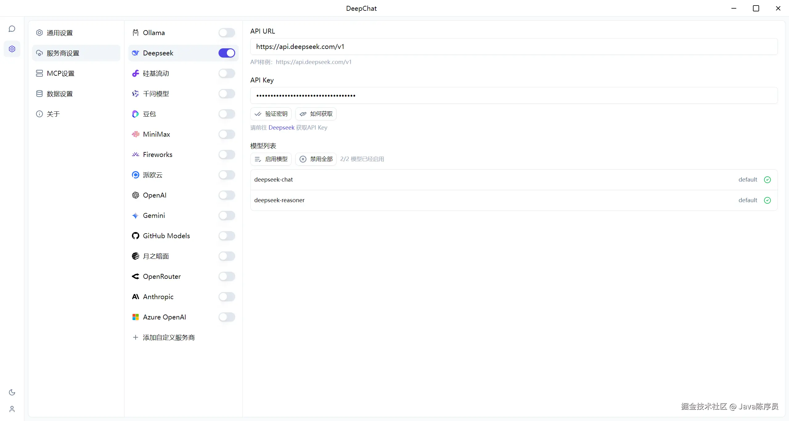1、DeepChat 安装好后,双击打开运行,首次打开需要配置模型配置商