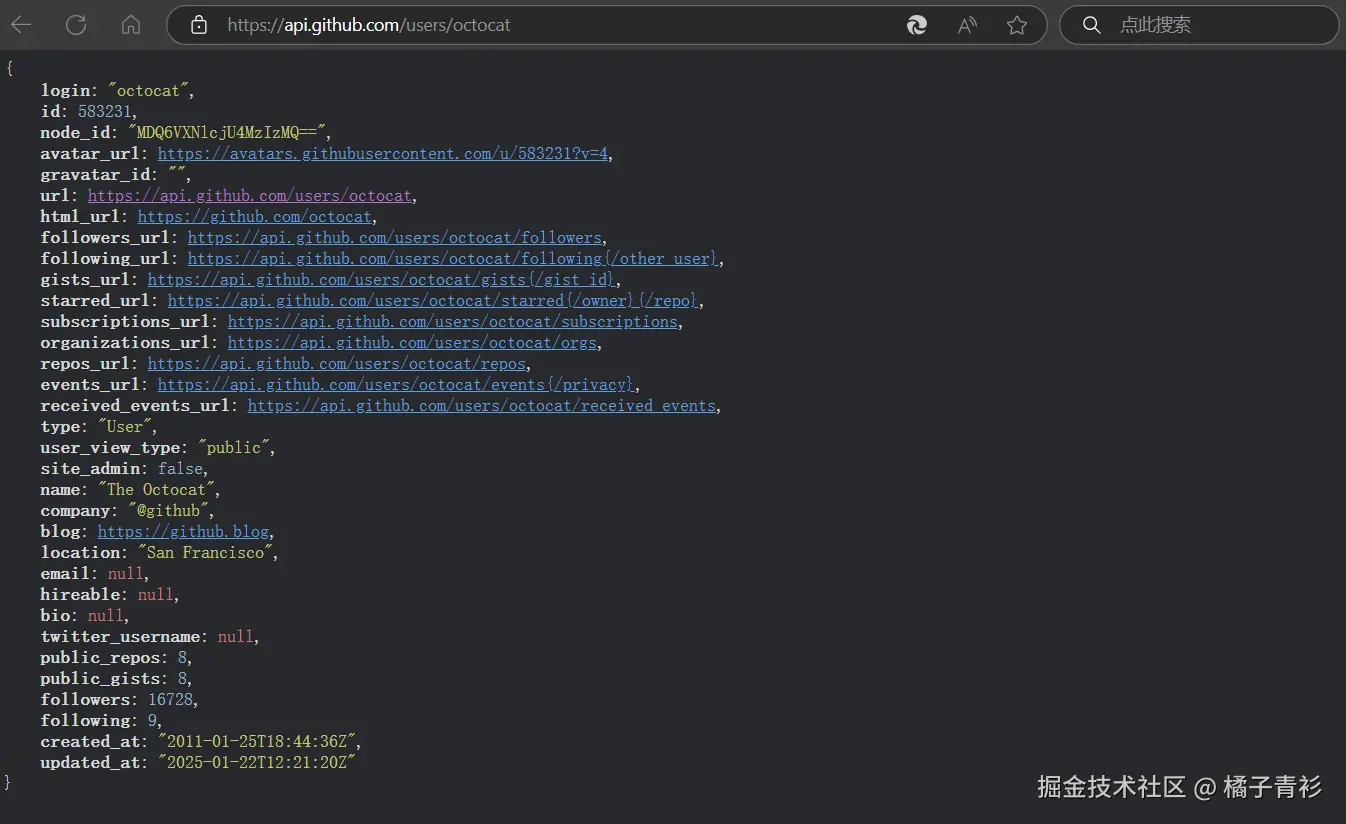 api.github.com/users/octoc… 的内容如下: