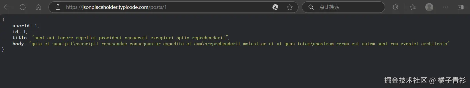 jsonplaceholder.typicode.com/posts/1 的内容如下: