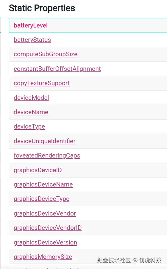 一般用其中deviceType、deviceName去找对应的硬件档次划分;或者直接graphicsDeviceName给到的GPU型号进行画质分级。