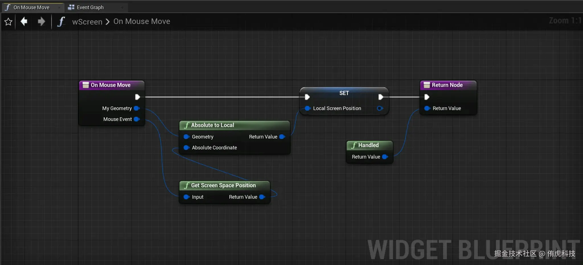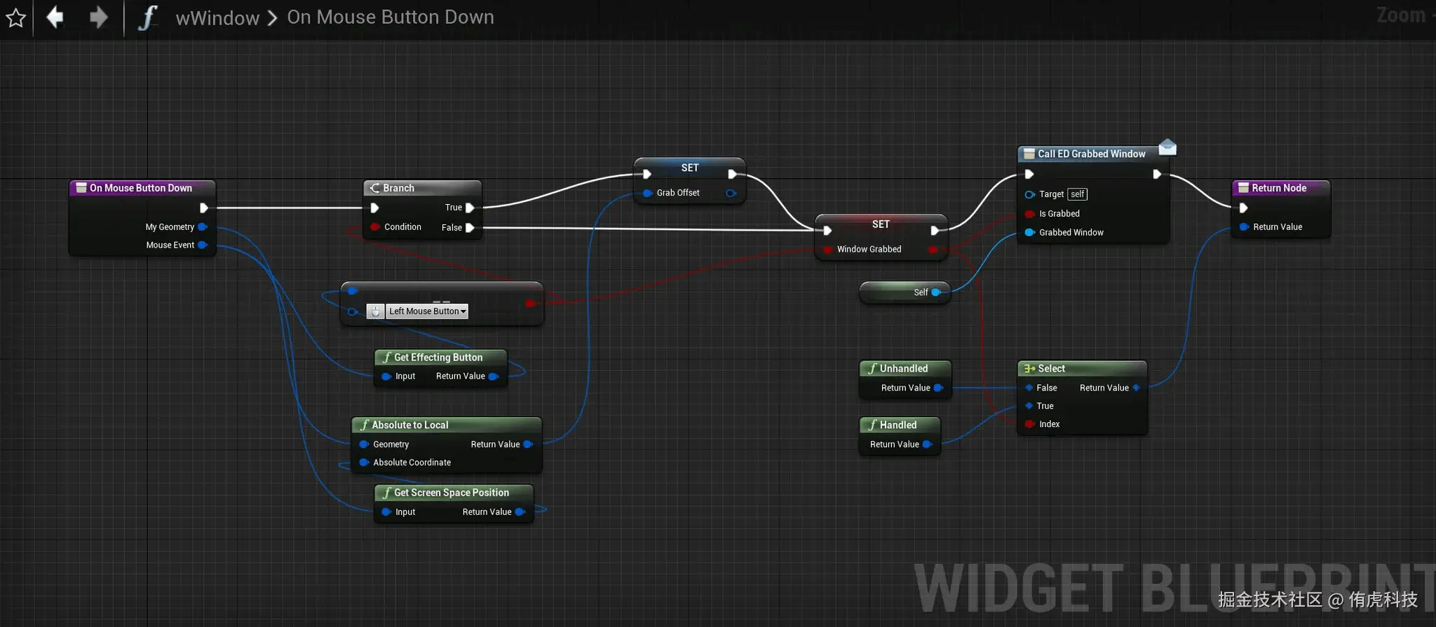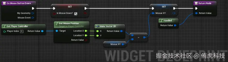 Q:我尝试在按下鼠标按钮时移动UI部件。它确实会移动,但它无法跟随鼠标光标,当我松开鼠标按钮时,它仍然会继续移动。以下是我目前的实现方式: