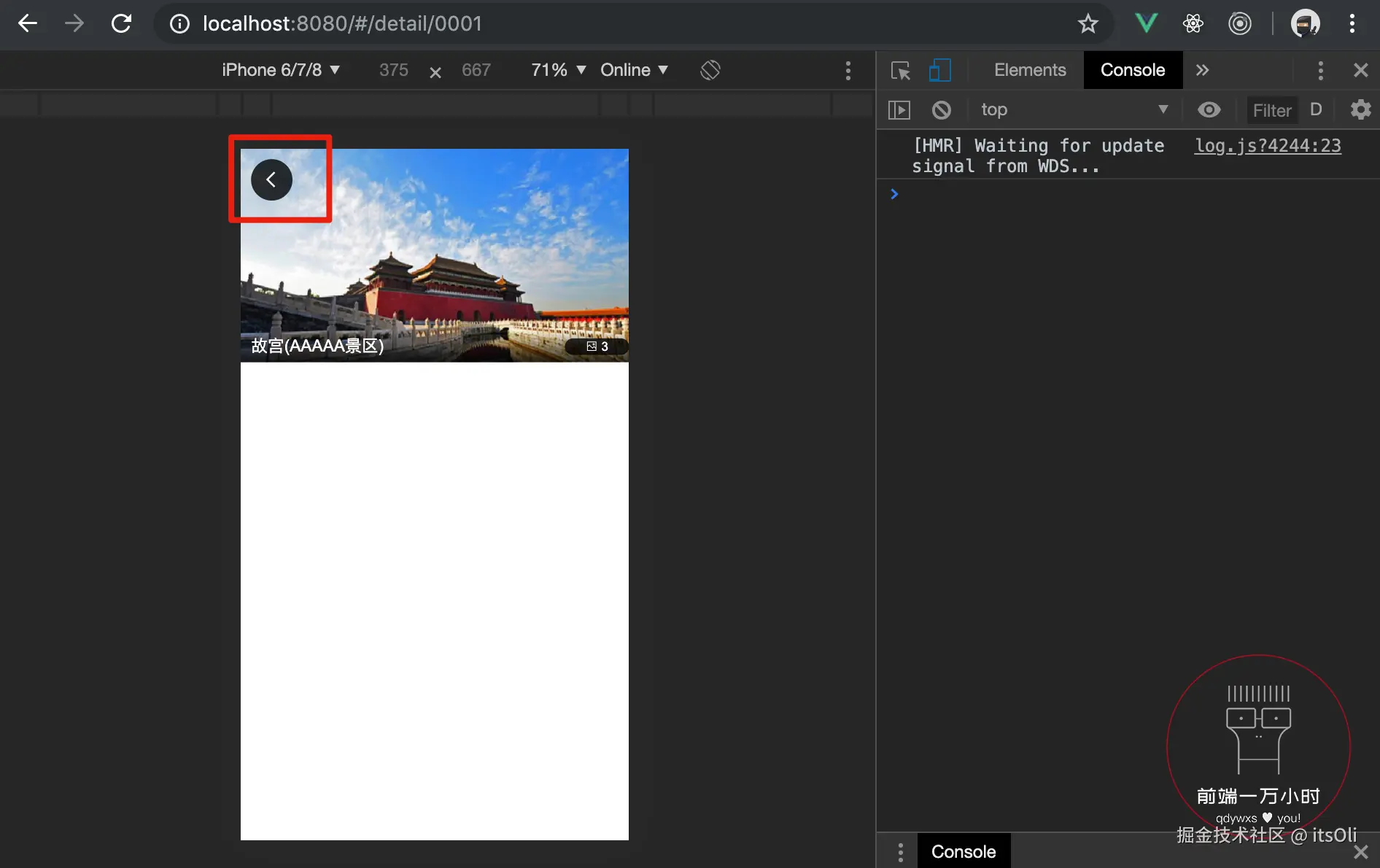 保存后,返回页面查看。页面显示正常,控制台无报错。当在详情页上下滚动时,导航栏也有了渐隐渐现的效果: