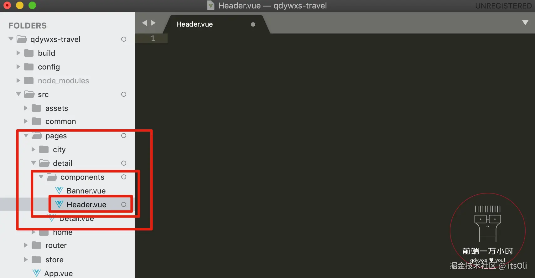 1️⃣在 detail 下的 components 中新建一个 Header.vue: