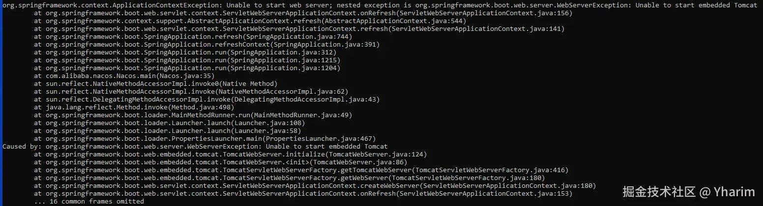 然后出现启动失败,出现如下异常: