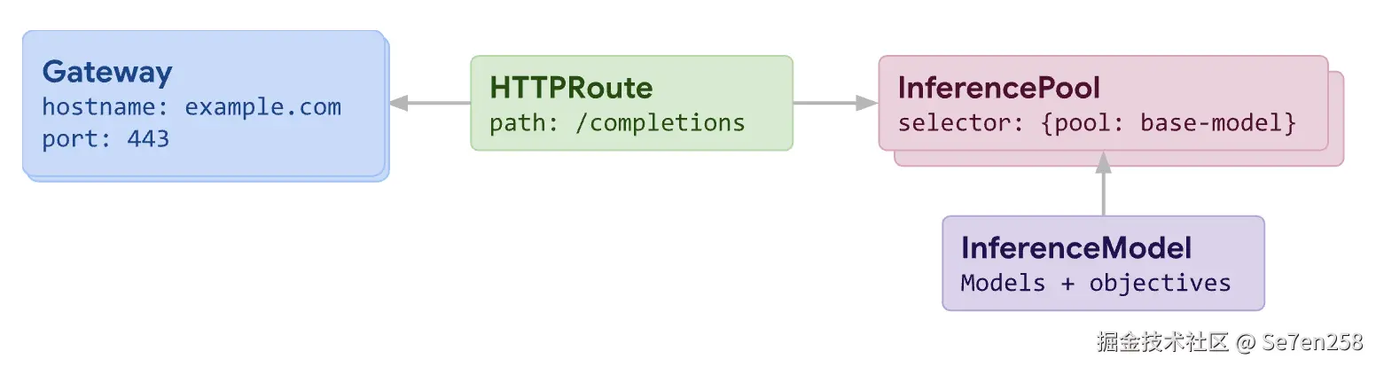 Gateway API Inference Extension 定义了两个核心 CRD:InferencePool 和 InferenceModel。