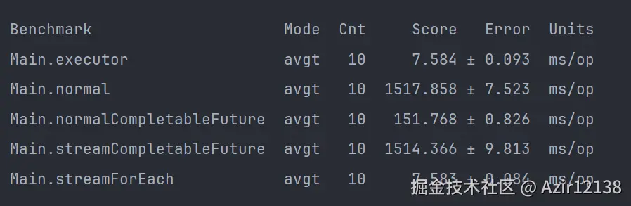 从测试结果能看出,For循环的写法和Stream+CompletableFuture的写法耗时是差不多的,可以近似理解成,这两个写法是完全相等的。