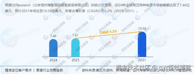 市场规模:根据QYResearch最新调研报告显示,2024年,全球高压特种电源市场销售额达到了7.46亿美元,预计2031年将达到10.58亿美元,年复合增长率(CAGR)为5.2%(2025-2031)。中国市场在过去几年变化较快,尽管具体数值未给出,但基于中国在全球制造业和科研领域的领先地位,其市场规模亦呈快速增长态势。