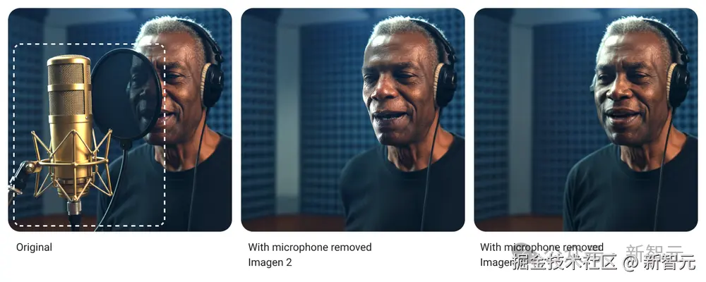 · Imagen 3 改进了图像生成和图像修复能力,用于重建图像中缺失或损坏的部分,并使物体移除编辑的质量更高。