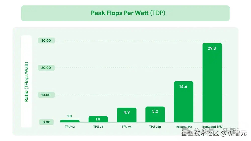 相较于 2018 年的第一代 TPU,Ironwood 推理性能飙涨 3600 倍,效率提升了 29 倍。