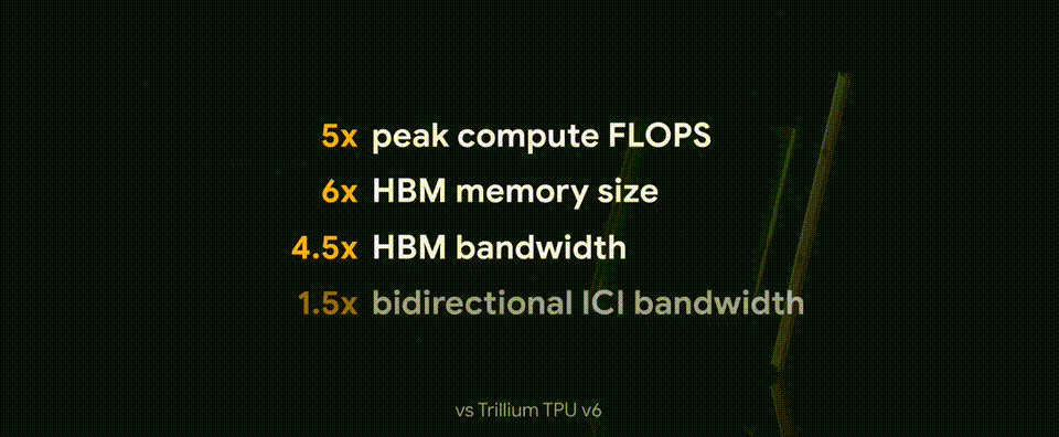 甚至,第七代全新 TPU 的性能是世界第一大超算的 24 倍。谷歌将于今年晚些时候正式推出 TPU v7。
