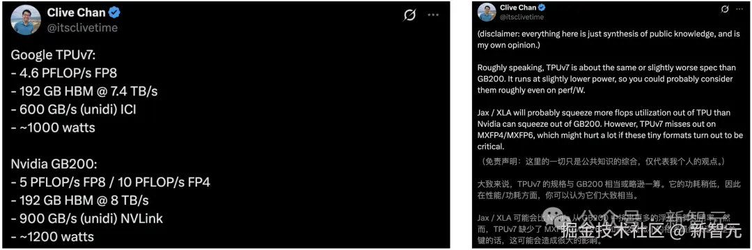 OpenAI 研究员针对 Ironwood 与英伟达 GB 200 做了性能对比,并表示 TPU v7 与 GB200 性能相当,甚至略胜一筹。