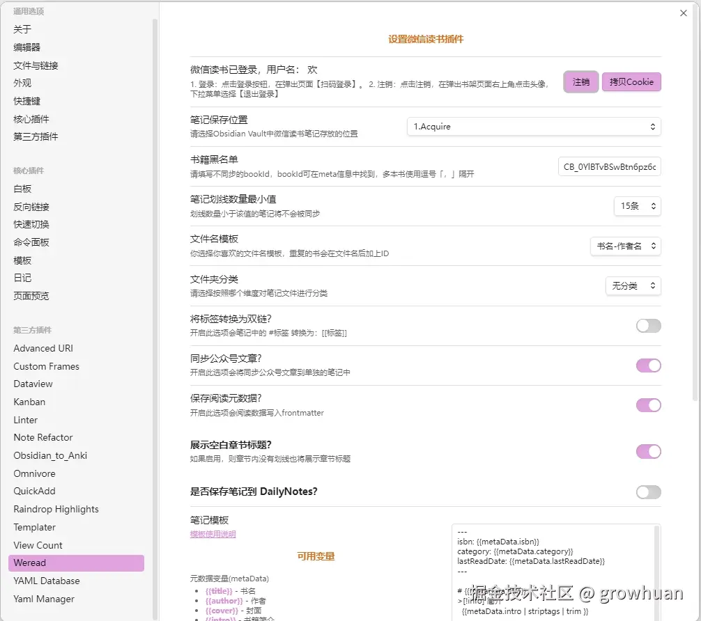 Obsidian 插件篇 -Weread 插件