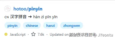 这里我选择了 github 上 shar 最多的一个库:pinyin