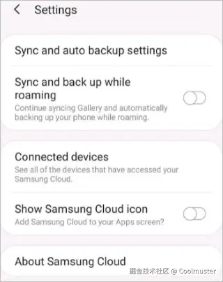 步骤 2. 转至“Samsung Notes 设置”>“与 Samsung Cloud 同步”并启用同步。
