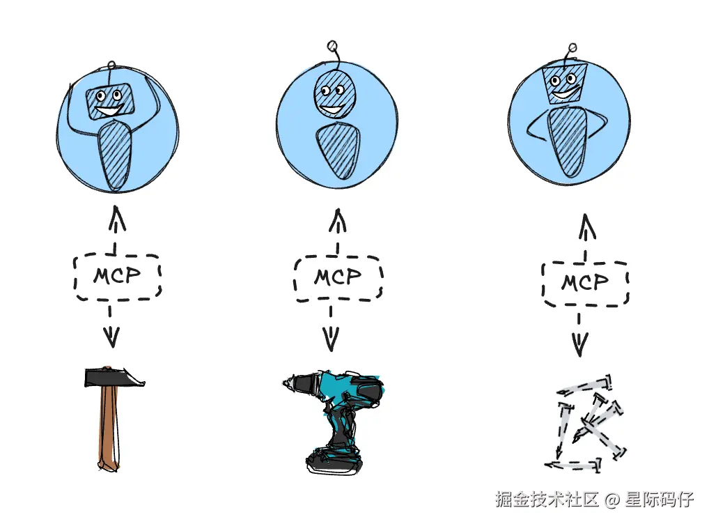 - 这些工人使用专用的工具来诊断和维修车辆故障。MCP 协议就是将工人们与他们使用的特定工具连接起来的协议。